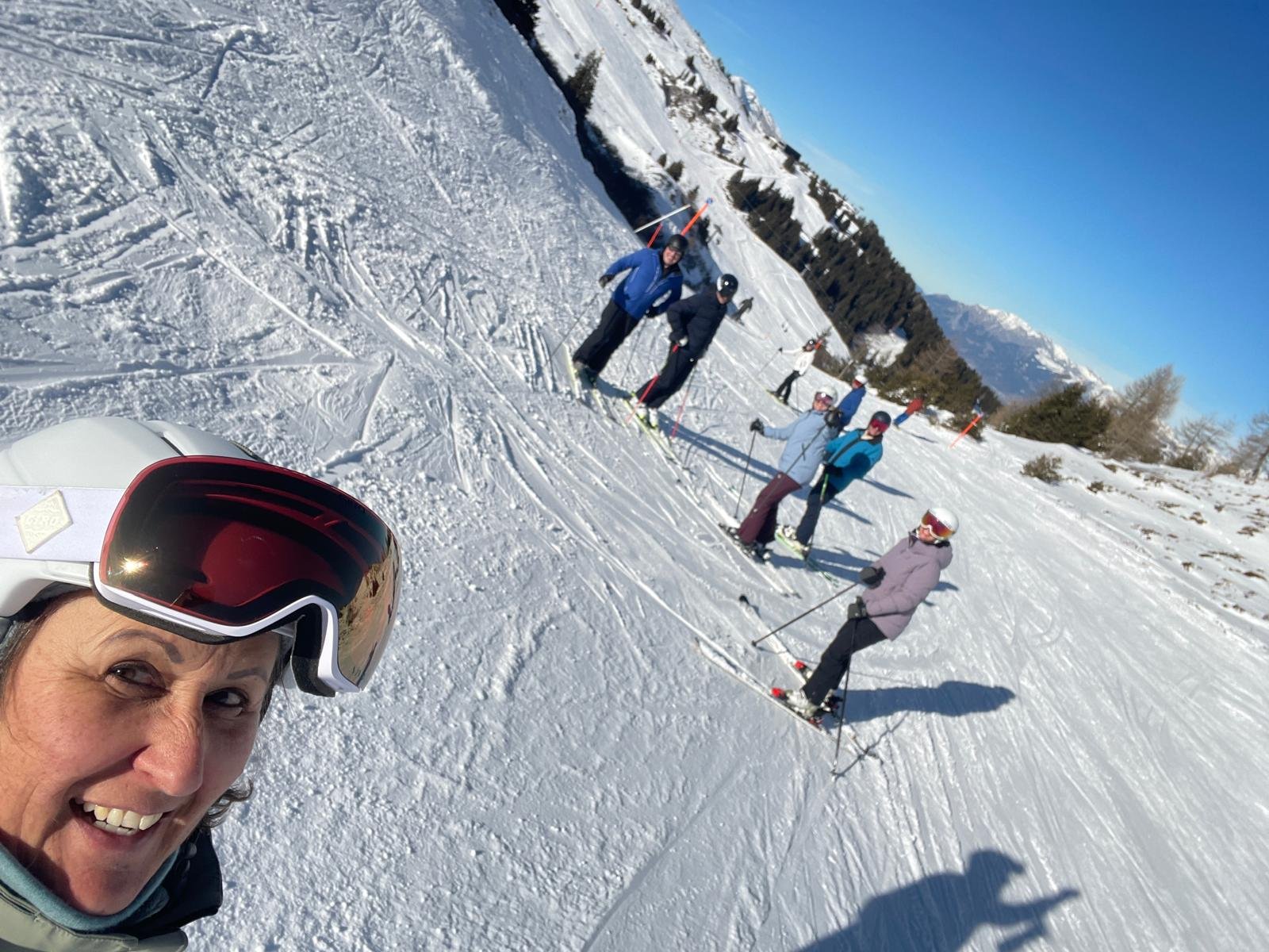 Uns erwarteten wunderbare, top präparierte Pisten. Mit viel Elan kurvten wir der Mittagspause entgegen ins Restaurant Lavoz, wo auch Rolf zu Fuss dazugestossen ist.
